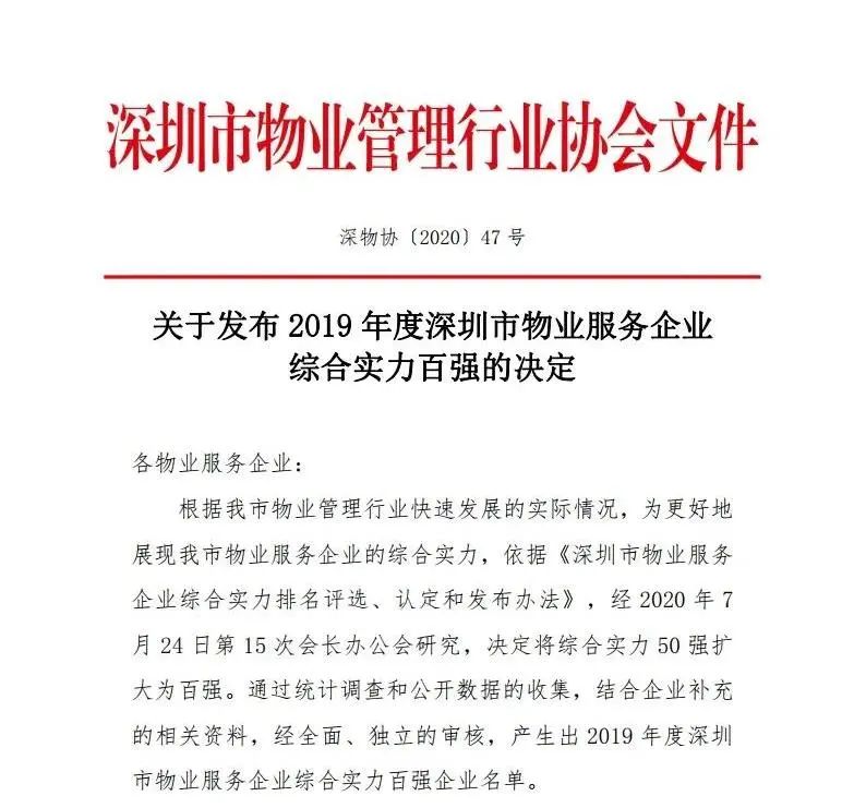 公司憑借優異的綜合實力和服務(wù)水平榮登深圳市(shì)物業服務(wù)企業綜合實力100強,充分(fēn)展現(xiàn)了(le)行業和客戶對我們的肯定。